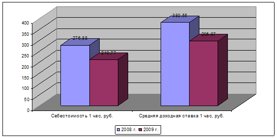 В работе проведен сравнительный расчет удельного расхода топлива по различным типам автомобилей, а также сформирована себестоимость 1 часа работы и тарифов на услуги.
