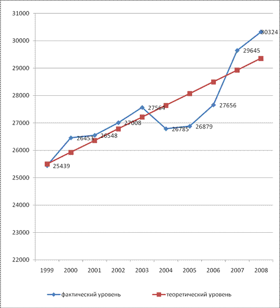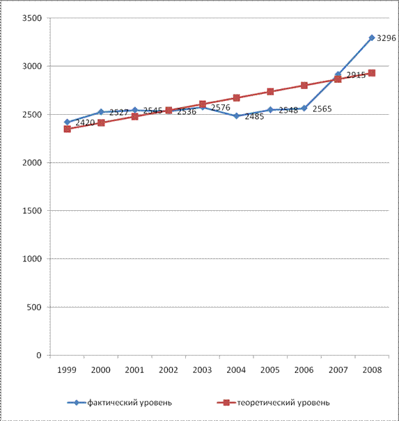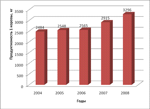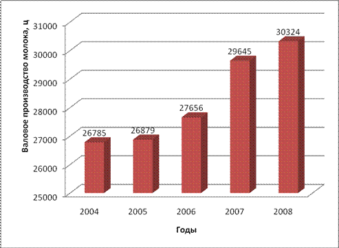 Проведенный статистический анализ производства молока за 2004-2008 гг. показал, что наблюдается рост: 3539 ц в 2008 г. по сравнению с уровнем 2004 года.