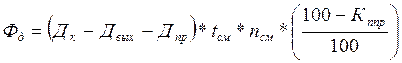 Действительный фонд времени рассчитывается по формуле (2.2):