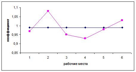 Коэффициент загрузки составил 0,99, что является не очень хорошим показателем , так как это означает, что оборудование на данном предприятии загружено не полностью и есть простои в оборудовании.