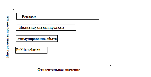 Используя названные инструменты, менеджер гастрономического бизнеса должен иметь в виду факт, что значение и эффективность отдельных инструментов дифференцированы (рис.1).