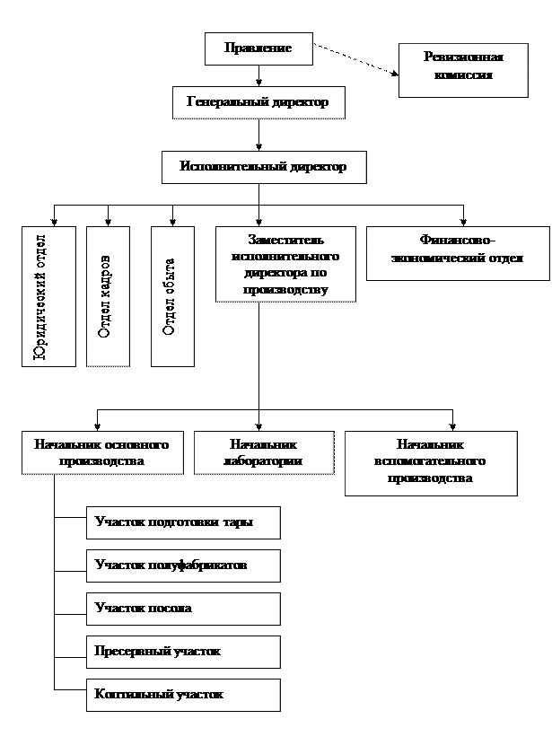 Организационная структура управления, применяемая на предприятии (рис.1), относится к разряду линейно-функциональных структур. Это означает, что на предприятии соблюдается принцип единоначалия, но вместе с тем существуют функциональные подразделения управления (технические, финансово-экономические и др.), которые обеспечивают руководителей необходимой информацией в пределах их компетенции для принятия решений.