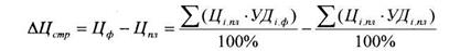 Спочатку визначимо середньозважену ціну за фактичної структури, потім при плановій та різницю між ними помножимо на фактичний загальний обсяг виробництва в умовно-натуральному виразі.