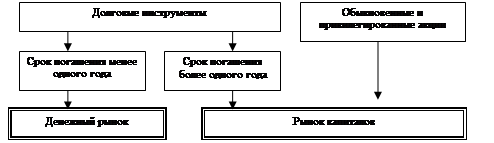 Рисунок 2. Классификация финансовых рынков по срокам погашения прав на активы.
