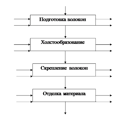 Производство нетканых материалов базируется на новой технологии, позволяющей ликвидировать такие трудоемкие процессы, как прядение и ткачество, резко повысить производительность труда, автоматизировать процессы производства, применять дешевое сырье.