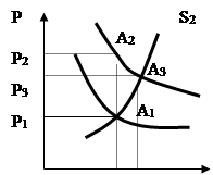 Очевидно, что эластичность связана со временем: она возрастает с увеличением периода времени. А цена равновесия самая высокая при мгновенном периоде – P2