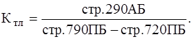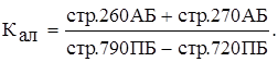 – отношение итога раздела II актива баланса за вычетом стр.210 «запасы и затраты» к краткосрочным обязательствам:
