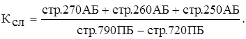 где - соответственно фактическое значение коэффициента ликвидности на конец и начало отчетного периода;