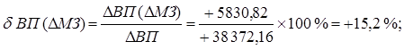1) абсолютный прирост объема производства за анализируемый период (ВП1) по сравнению с предыдущим (базовым) годом (ВП0), который позволяет дать оценку скорости изменения: