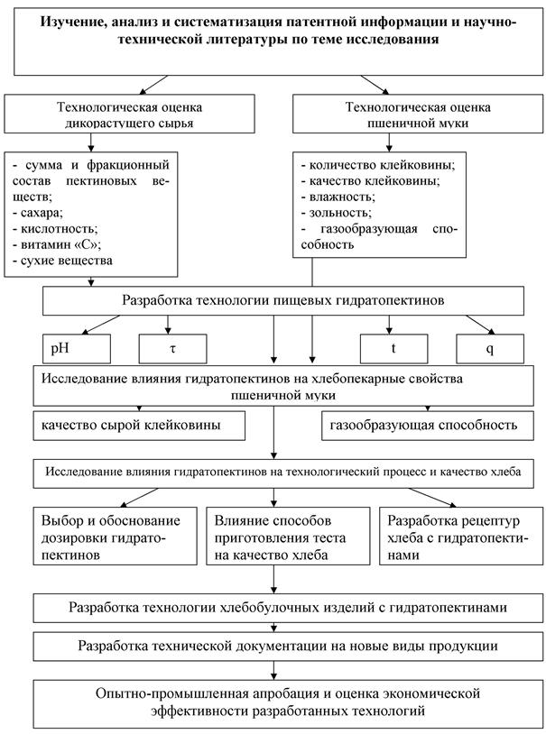 Основными объектами исследований были: плоды дикорастущих культур (боярышник, шиповник, облепиха, унаби, хеномелес), гидратопектины, мука пшеничная общего назначения М 75-23 (ГОСТ Р 52189-2003), хлеб содержащий гидратопектины. Исследования проводили по структурной схеме (рисунок 1).