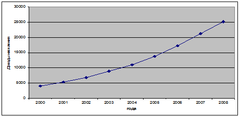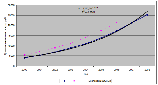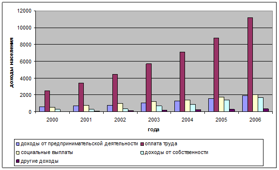 Денежные доходы населения в течение 9 лет постоянно росли, если в 2000 году они составляли 3983,9 млрд. руб., то в 2008 году – 25229,2 млрд. руб.