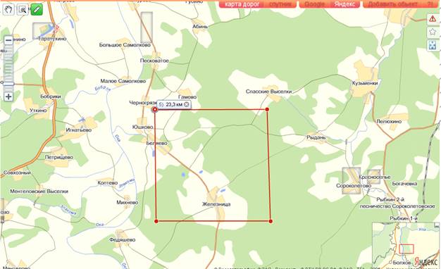 Объектом работ является территория около деревни Беляево и Железница Белёвского района Тульской области площадью 34 км2