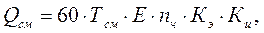 – коэффициент использования экскаватора во времени, для добычных экскаваторов Ки