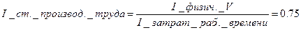 Таким образом, стоимостной индекс производительности труда в ЗАСТ«Батькивщина»составил 0,75, т.е. в 2009 г. по сравнению с 2008 г. производительность труда снизилась на 25%. Это вызвано тем, что затраты рабочего времени увеличились на 115%, а индекс физического объема продукции увеличился незначительно (лишь на 60%).