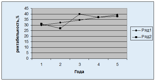 При проведении групировки было выявлено 5 групп, что предприятие КСП имени Дзержинского находится в 1 группе, где данные этого предприятия составили - «выручкой от реализации продукции на 100 га» - 94,21 грн/га и окупаемостью 36,98%. В целом же по 1 группе средняя выручка от реализованной продукции на 100 га составила 71,7691562 грн/га при средней окупаемости затрат - 62,51696947 %, в эту группу вошли 16 хозяйств. При проведении расчетов и выяснения динамики были получены такие результаты, а именно: средняя рентабельность продукции животновосдтва составила 34,6% за 5 лет (с 2002 года по 2006 год). Средний абсолютный прирост составил 1,755%, который показывает , что происходит увеличение с каждым годом на 1,755%. Средний коэффициент роста показывает, что по сравнению с 2002 годом в 2006 году рентабельность продукции жифотноводства увеличилась в 1,0523 раза или составила 105,23%. Средний темп прироста показал, что уровень по сравненю с базисным увеличился на 5,23%. И среднее абсолютное значение показывает за исследуемый период, на 1% повышения или уменьшения, как реагировал абсолютный прирост. В моем случае, на каждый 1% повышения приходится 0,3355 повышения абсолютного прироста.