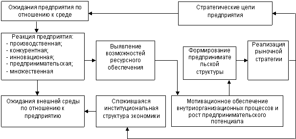 Предприятие представляет собой саморазвивающуюся систему, которая может с определенной степенью гибкости реагировать на изменения внешней среды, адекватно изменять свою стратегию, цели, формальные структуры, организационную культуру и поведение персонала. Эффективность реагирования предприятия на изменения ее окружения зависит от степени открытости системы, адекватности механизма управления логике эволюции предприятия и окружения, равновесия в сочетании развития внутренней и внешней среды. Усложнение последней характеризуется ростомдифференциации внешних хозяйственных условий, высокими темпами смены хозяйственных приоритетов, влияющих, в свою очередь, на выбор стратегических целей предприятия, глобализацией экономических отношений, в которые вступает предприятие.