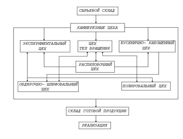 2.1 СХЕМА КАМНЕОБРАБАТЫВАЮЩЕГО ПРОИЗВОДСТВА.