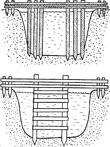 Два типа бруиров - приспособлений из деревянных кольев и брусьев, которые устанавливаются поперек русла реки и вызывают бурление воды. В результате вода не замерзает, и выдра имеет доступ к воде.