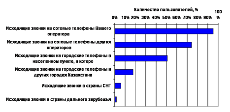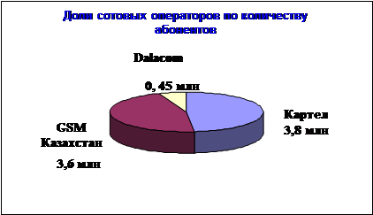 Сотовый рынок Казахстана характеризуется следующими особенностями: перечень предоставляемых услуг практически одинаковый у всех операторов сотовой связи, компании – операторы связи конкурируют между собой в части тарифов на оказываемые услуги. По сравнению с 2004 годом количество абонентов сотовой связи увеличилось в 2,5 раза.