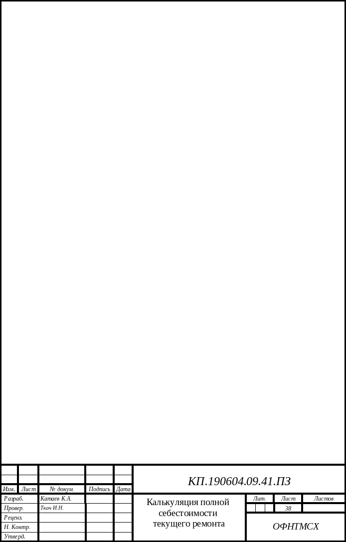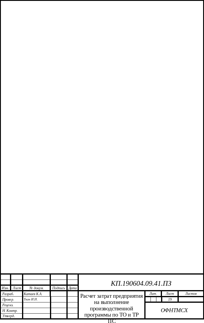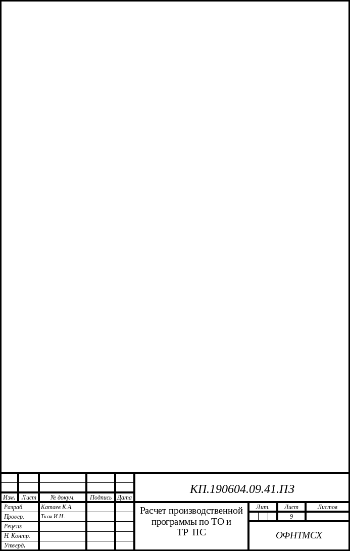 Выполнил: студент группы А-41 Катаев Кирилл Александрович Специальность:190604 техническое обслуживание и ремонт автомобильного транспорта Курсовой проект принял преподаватель: Ткач Ирина Николаевна Д ата: О ценка: П одпись: