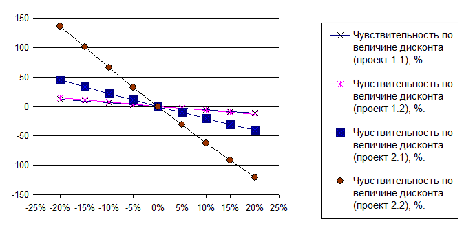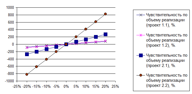 Т.е. можно сделать вывод, что первый и второй проект устойчивее к внешних факторов, чем третий. Самый неустойчивый – проект четыре
