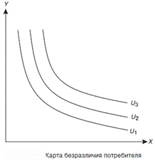 Карта безразличия – это множество кривых безразличия, которые характеризуются равными полезностями на одной линии и разными – на разных линиях.