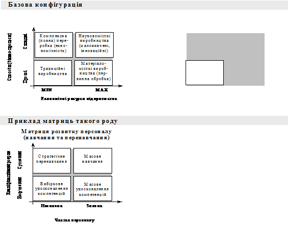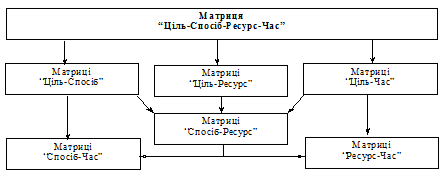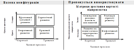 інтерпретовано чотиривимірну матрицю управління розвитком підприємства “ціль-спосіб-ресурс-час" для підприємства галузі нетканих матеріалів, що дозволило запропонувати систему двокритеріальних матриць, а також поєднати переваги двох концептуально різних підходів до управління розвитком - індексного та результатного.