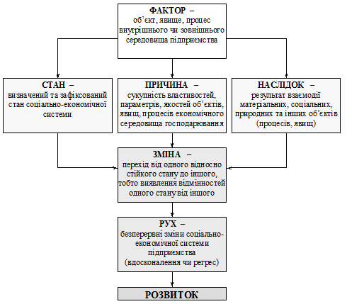 Першоосновою розвитку підприємств слід вважати різноманітні зміни (внутрішнього та зовнішнього характеру), які виступають результатом взаємодії економічних предметів (об’єктів), їх різних властивостей, рис і параметрів. Соціально-економічні зміни у системі підприємства носять об’єктивний характер, тобто не залежать від волі та бажання людини (власників, менеджерів, працівників, інвесторів, кредиторів тощо).