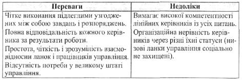 Таблиця 2.1.2 Переваги та недоліки лінійних організаційних структур управління