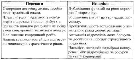 Переваги та недоліки дивізійних структур наведено у табл. 2.2.3