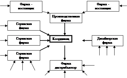 . Специфика данной интеграционной конфигурации заключается в значительной степени независимости между элементами, участвующими в процессе создания добавленной стоимости продукции (Рис. 1).