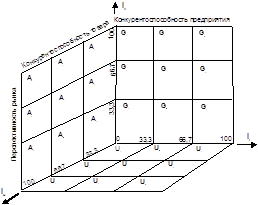 Конкурентоспособность показывает, насколько продуктивна и эффективна фирма по отношению к конкурентам, посредникам и в обслуживании заказчиков. Продуктивность связана с качеством выпускаемых изделий, занимаемой долей рынка и доходностью; эффективность - со скоростью ответной реакции и экономией издержек. Эффективность, и продуктивность, в конечном счете, зависят от конкурентной рациональности корпорации, т.е. силы ее соревновательного духа и умения принимать решения.