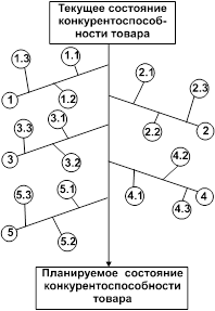 На основе созданного множества функциональных и потребительских свойств оцениваемых услуг-аналогов создается эталонный вид товара, синтезирующий в себе лучшие свойства. При этой оценке необходимо зафиксировать отклонения своего вида товаров от эталона в двух аспектах: