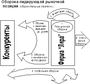 – оборона особо уязвимых флангов компании, на которые чаще всего наносятся удары конкурентами. Это могут быть слабые места в виде марок фирмы, в виде цепочек товародвижения и т.д.