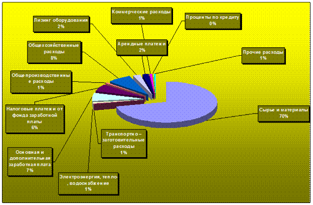 Рост цен на сырье приведет к росту себестоимости продукции. Учитывая, что в продукции данная статья калькуляции имеет удельный вес 33 %, для предприятия это существенно.