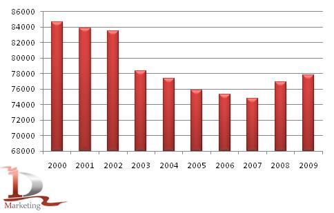 Динамика посевных площадей сельскохозяйственных культур в 2000 – 2009 гг., тыс. гектаров