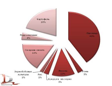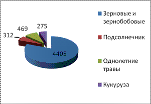 Посевная площадь распределяется по четырем группам посевов сельскохозяйственных культур: