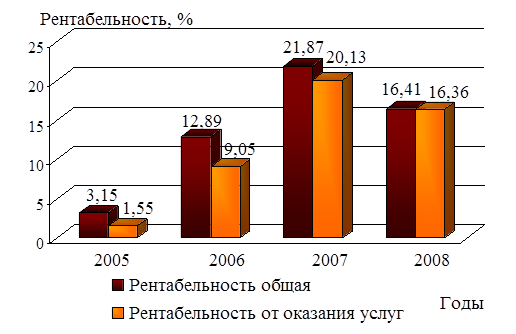Таблица 1 Стоимость услуг филиала “Междугородная связь” за 2006-2008 гг.