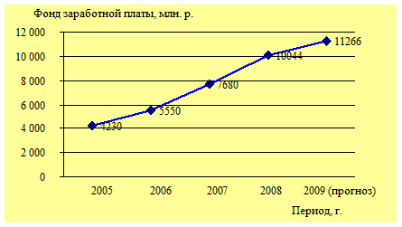 Как видно из рис. 10 и табл. 18 фонд заработной платы постоянно увеличивается и в среднем наблюдается его рост по сравнению с предыдущим на 32%, хотя в 2009 г. рост заработной платы снизится.
