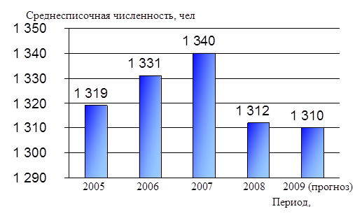 Изменение среднесписочной численности постоянно увеличивалось до 2007 г., в 2008 г. наблюдается резкое сокращение численности.