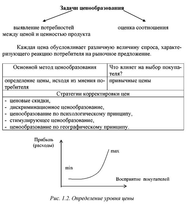 На рисунке показано, что нижний предел цены определяется расходами и прибылью, а верхний - покупательским восприятием.