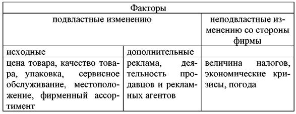 Отдельные факторы, от которых зависит объем сбыта фирмы, не подвластны изменению, другие – реально изменить.