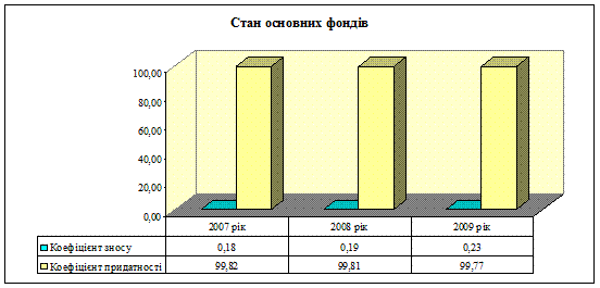 Аналізуючи наведені дані можна говорити про незначне збільшення коефіцієнту зносу протягом 2007–2009 років, але варто зазначити і те, що коефіцієнт придатності є достатньо високим і свідчить про оновлення основних засобів.