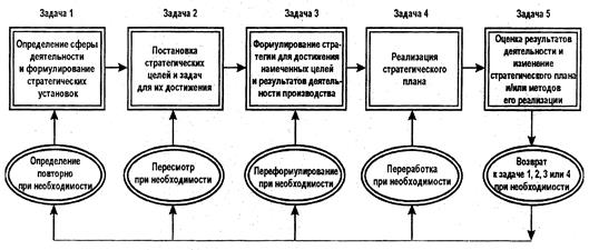Стандартный стратегический план включает такие элементы, как предположение о тенденциях развития и характере конкуренции, изменений внешней среды; анализ сильных и слабых сторон самой организации; ее миссию и важнейшие цели; общую стратегию; план действий по созданию конкурентных преимуществ; функциональные стратегии и стратегии на случай чрезвычайных обстоятельств для производства, маркетинга, сбыта, финансов, кадров; ресурсы, необходимые для реализации стратегий и планов; оценку вероятности стратегического успеха; график основных мероприятий.