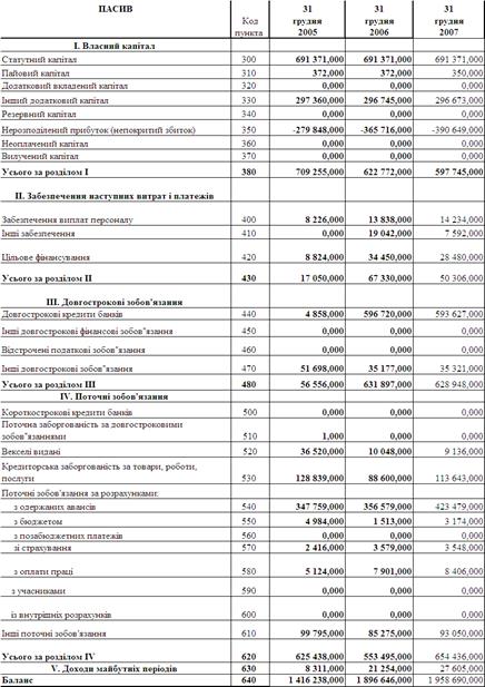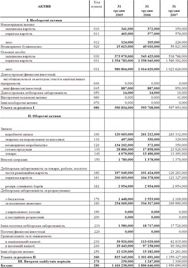 Таблиця А.1 Баланси ВО „ПМЗ” за 2005 2007 роки
