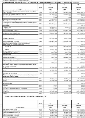 Таблиця А.2 Звіт про фінансові результати ВО «Південний машинобудівний завод» за 2005 – 2007 роки