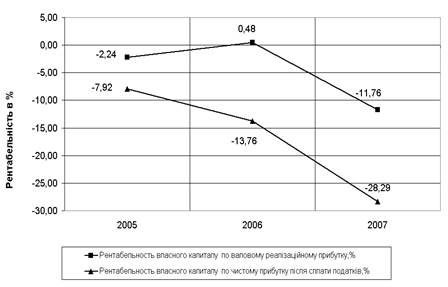 що перевищує рівень альтернативної доходності капіталу 15% річних для 2007 року (рівень депозитної банківської ставки) та робить тракторне виробництво підприємства інвестиційно привабливим.