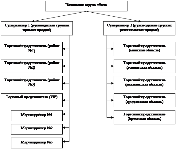Рисунок 1. Организационная структура отдела сбыта ОАО "Минская птицефабрика имени Н.К. Крупской"
