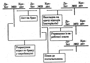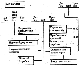 Загальна схема обліку браку, який можна виправити, наведена на рис. 5, а браку, який не можна виправити, на рис. 6.