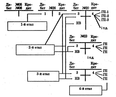 На підставі цих документів складають у залежності від наявності технічних засобів відомості, журнали-ордери, машинограми про формування затрат. Це дає змогу далі здійснити облік на другому етапі: розподіл та перерозподіл затрат.